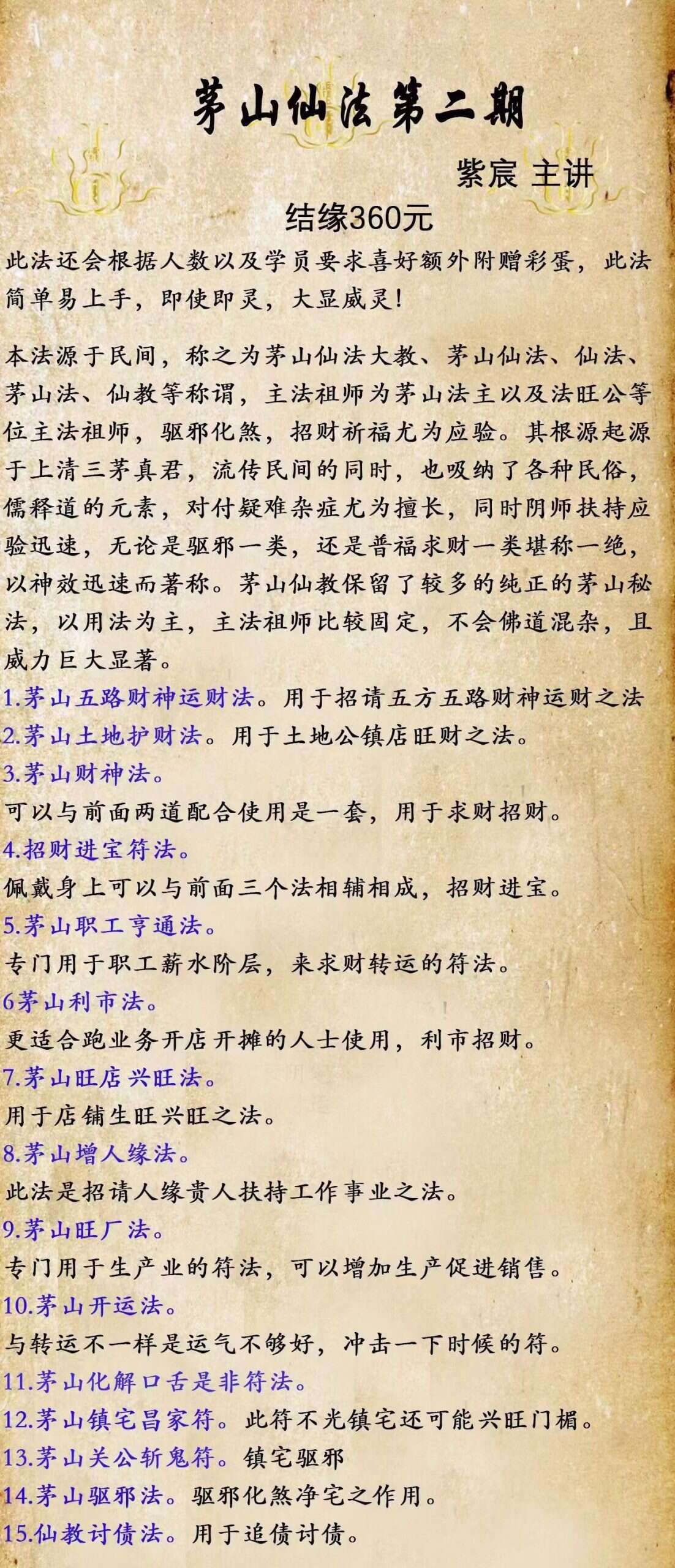 14.茅山驱邪法。驱邪化煞净宅之作用。