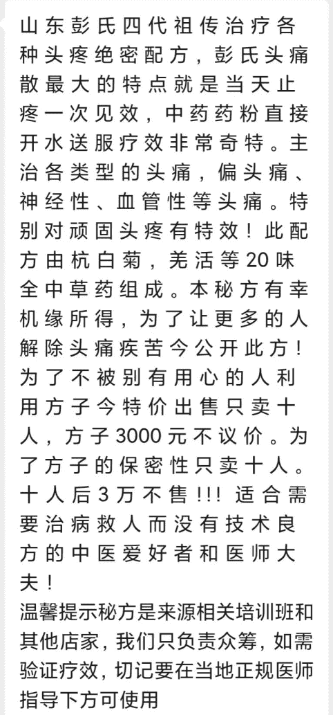 独家布发彭氏头散痛绝密配方最新引进,👍 👍 山东彭氏四代祖治传疗各种头疼绝配密方,彭氏头散痛最大特的点就是天当止疼一次见效,中药药粉直接水开送服疗效非奇常特。主各治类型的头痛,偏头痛、神经性、血管性头等痛。特别顽对固头有疼特效!