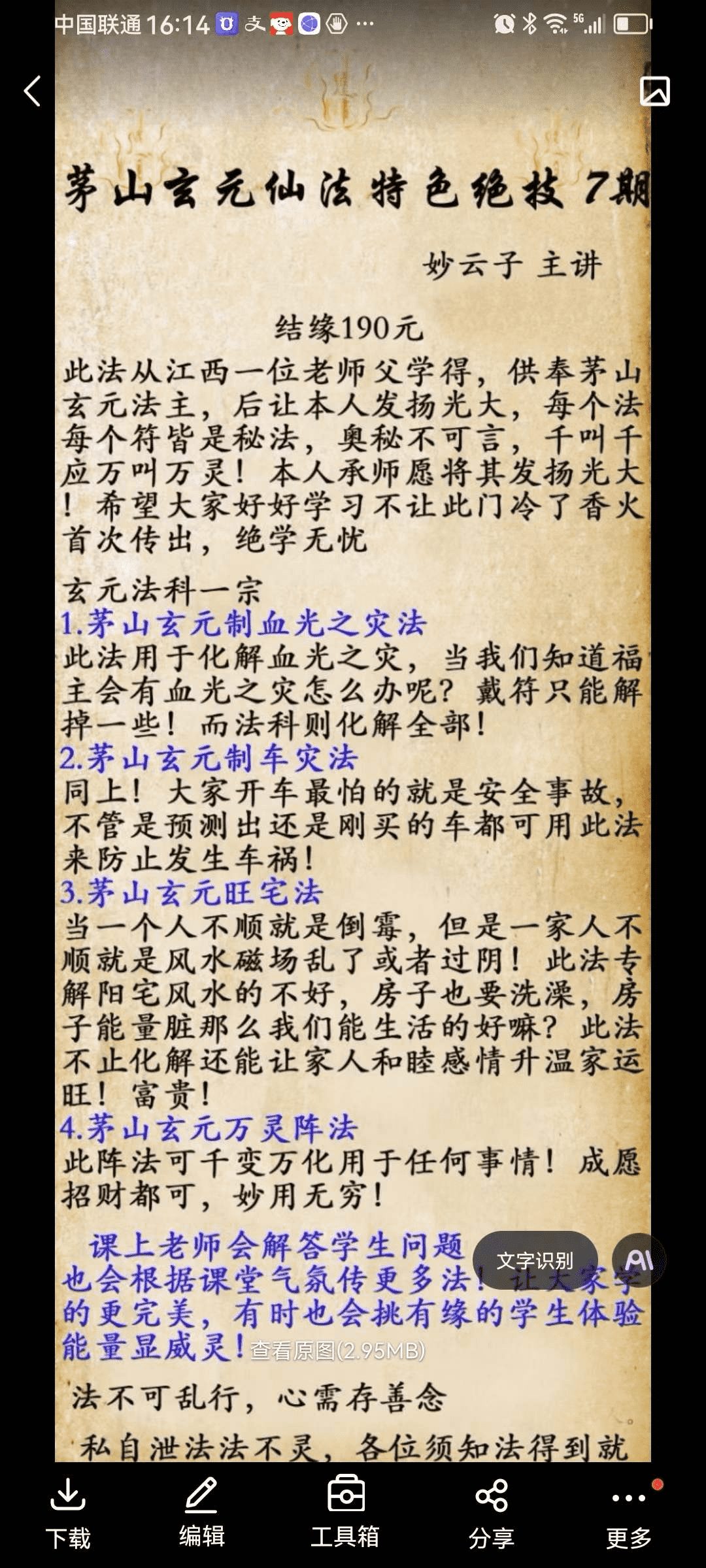 1.茅山元玄制血光之灾法