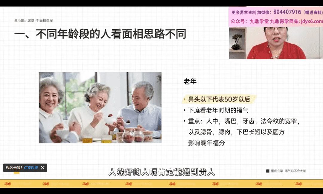 鱼小姐面相课视频11集视频,带字幕讲解,从零开始学面相,提升面相解读能力,带你认识并掌握面相看人生百态,事业子女,财运等思路和流程。
