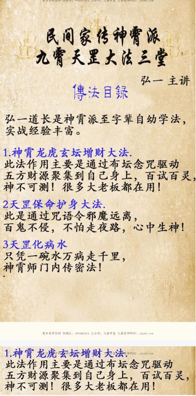 弘一道长是神霄派至字辈高道自幼学法,实战经验丰富。