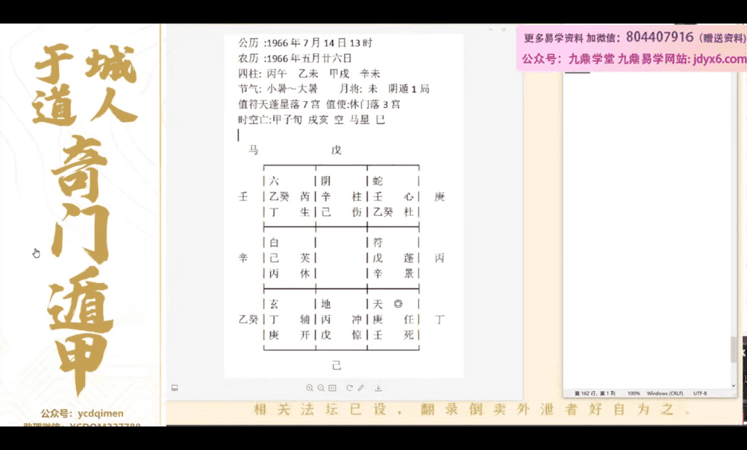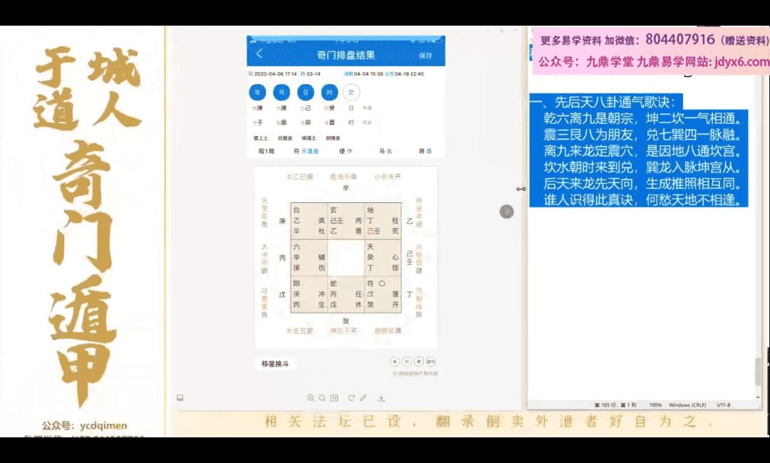 于城道奇门遁甲调理网络班视频4集,每集几十分钟讲解。
