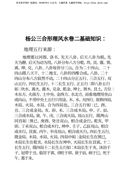 杨公三合形理风水.pdf 148页 张沣著,据说很牛逼的杨公三合形理风水内部学习资料,牛逼到在百度网盘会出现乱码,只能微信发文件,下单后联系客服:804407916
