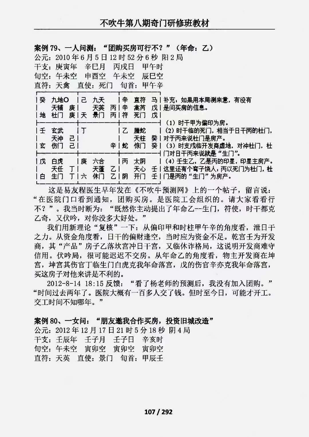 有人问,既然书籍是越到后面理论越完善,那是不是只看第九期就可以了呢,非也,诚然第九期是最新的一期,理论也确实趋于完美,1-5期属于基础阶段,6-9期属于高级阶段,新理论也基本从六期开始,但是学易有如学武,这1-9期教材有连贯作用,只有把1-5期的基础打好,才能学好更高深的理论,应用起来才能更加称手,新理论并不是完全改变奇门遁甲的传统模式,就如八门九星八神转换理论,肯定先得把传统的预测法里面的取用理论掌握好,然后用八门九星八神转换理论确定最终的用神宫,所以1-5期也必须看,况且老师在后期教材里面有大量案例是对旧案例的新解延续,有1-5期教材,也能看看预测差别在哪里,以后自己预测的时候,就可以快速得出结果,不再走弯路,不会出现迟迟不肯下断语的状况!