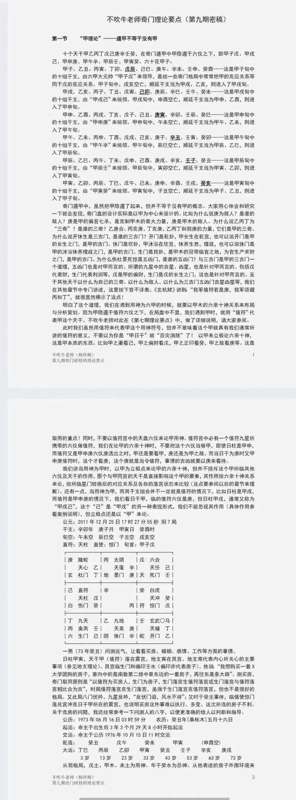 不吹牛杨传顺老师,师从当代奇门遁甲专家幺学声老师,研习奇门遁甲近20年,深得幺老师学术真传,且这些年经过不断的实践总结,其水平已不在幺老师之下,很多易友说奇门无真,学习很多年奇门遁甲,但是实践起来准确率非常低,然后就去学习大六壬,学习六爻最后收获也不大,奇门遁甲自有它的缺陷,但是奇门的优点也非常明显,如果真喜欢这们预测术,我们就应该不遗余力的去研究它,笔者最初接触的易学预测术就是奇门遁甲,这些年也一直未放弃对奇门遁甲的探索,也确实经历了广大易友遇到的准确率很低的情况,包括不吹牛杨老师早期也有一样的困惑,因为当今坊间的奇门遁甲就是如此,得真知者少。都是玩早期的奇门模子。