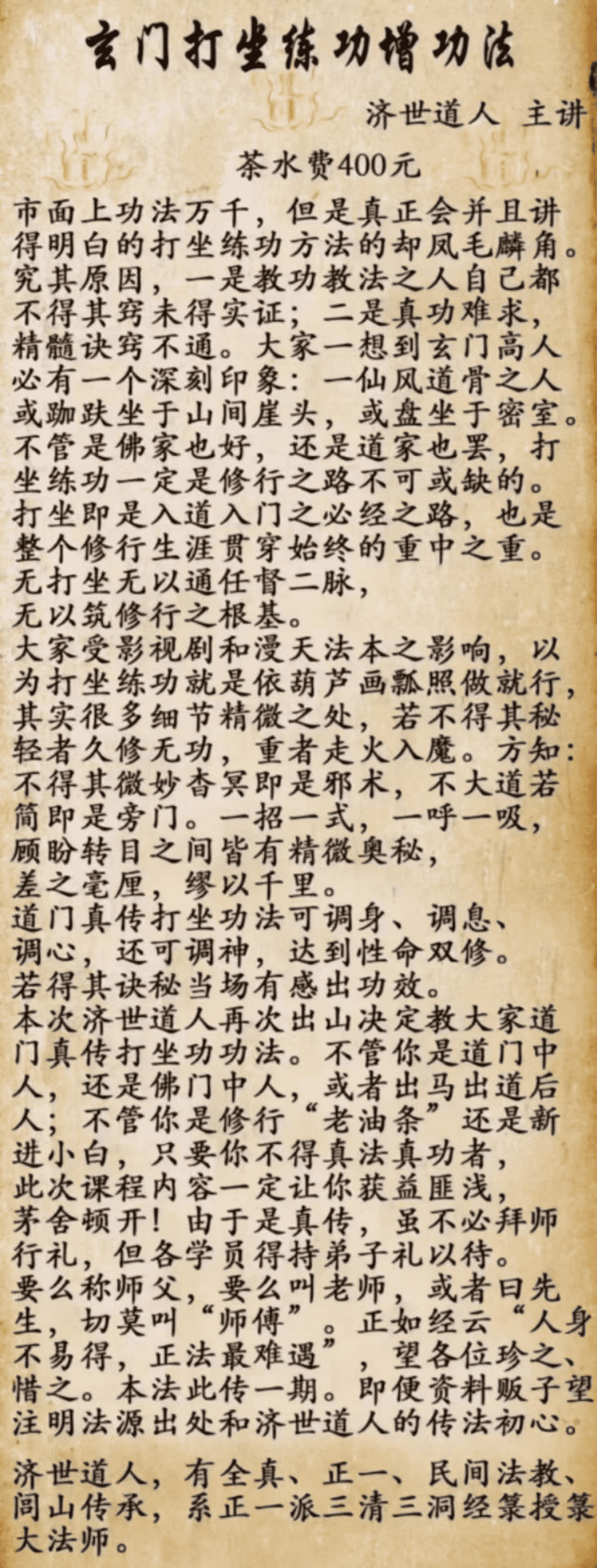 本次济世道人次再出山决教定大家门道真传打坐功功法。不管你道是门中是还佛门中人,或者马出出道后不管你修是行“老油条”,还是新小进白,只要你不得真法功真者此次课内程突一定让获你益匪浅茅顿舍开!