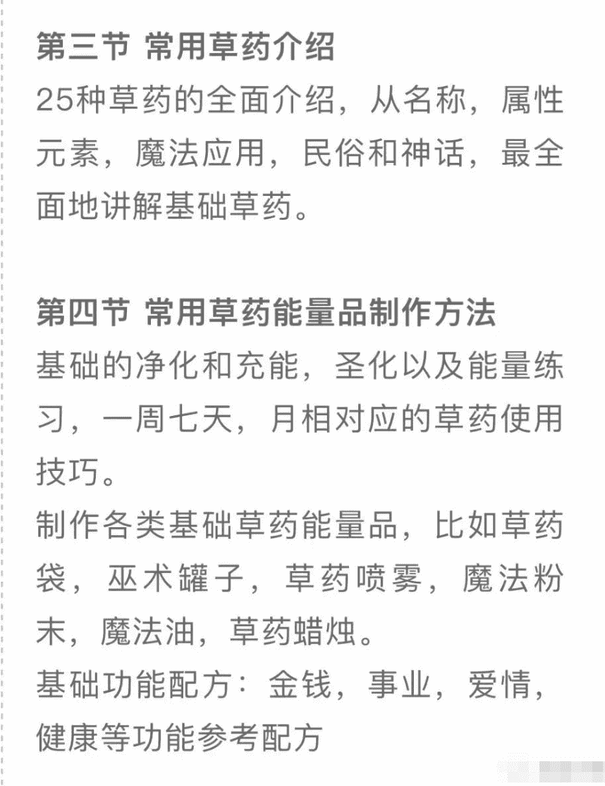 ✨这一套草药和蜡烛的制作课程适合现代城市女巫(男巫)们的操作,深入浅出,剔除了已经被扭曲和神秘莫测的古代神话,草药魔法的古代溯源,直接进入到草药实操,建议配合大量的高我链接和冥想,更好的使用草药进行魔法操作。