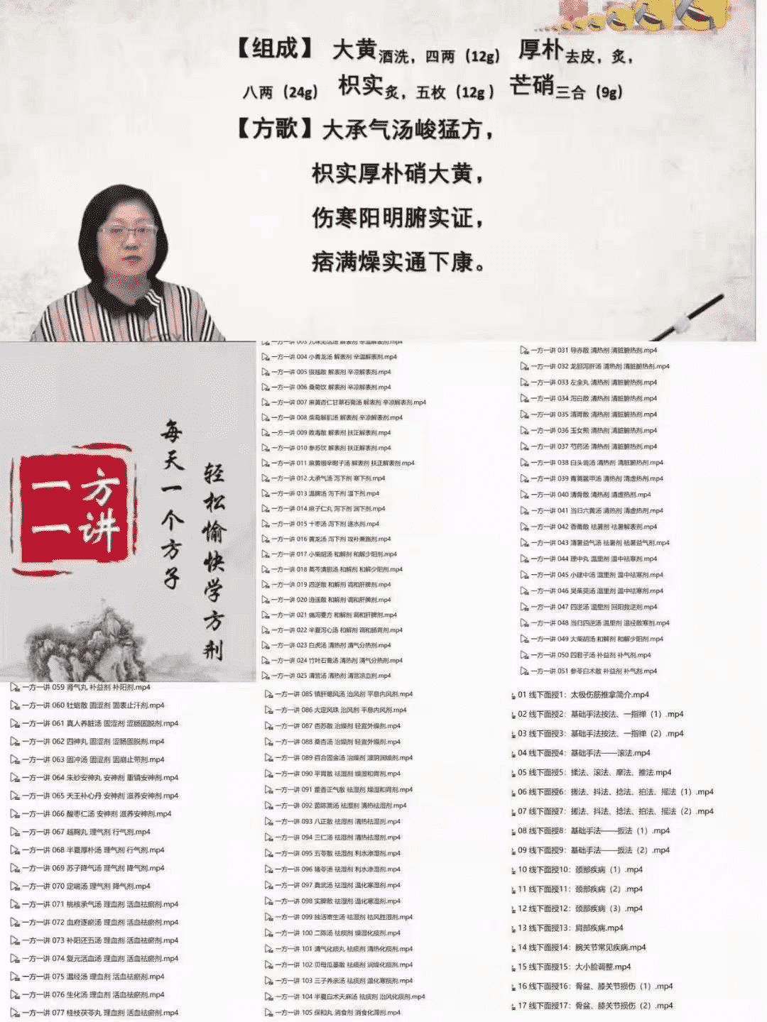 🔥🔥中大师承学堂–曹兰秀副教授【方剂好课】《一方一讲》 109种方剂精讲 直达临床 视频清晰 干净制作精良 老师水平高,难得一见的好课