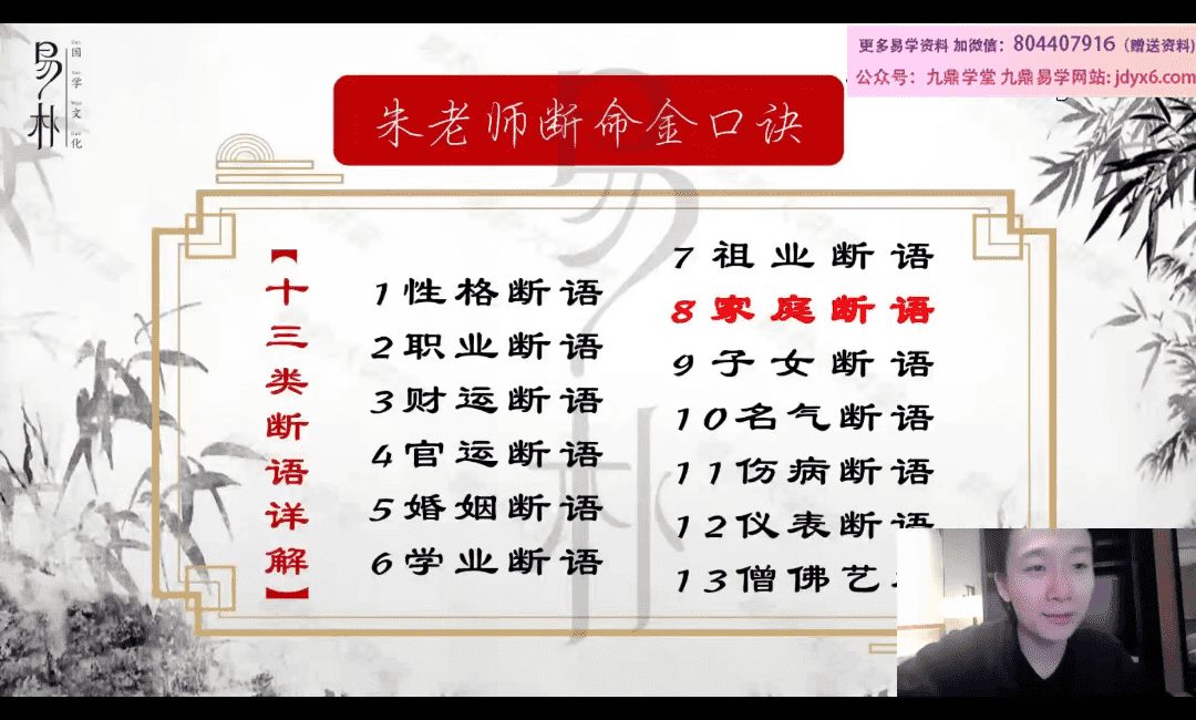 朱昱、闻源《四柱八字答疑课程》37集视频,讲解八字十三类断语的使用,过三关的应用等,实用价值挺高。