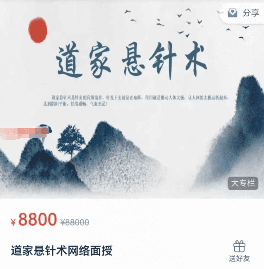 道家悬针术网络面授班视频6集,道家悬针术是针灸的高级境界,针扎下去就是在布阵,作用就是推动人体太极,让人体的太极运转起来,达到阴阳平衡,经络通畅,气血充足。注意,本站视频都有水印,否则容易分享失效。