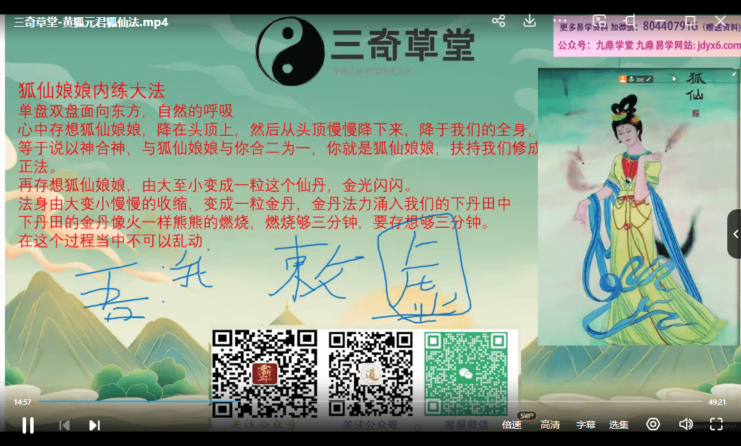 三奇草堂-王道祯 黄狐元君仙狐法,视频49分钟,讲的详很细但、不啰嗦,普通话清晰,文档投屏同讲步解
