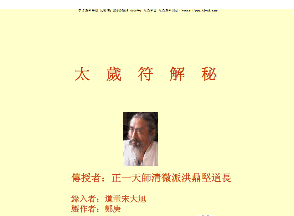 正一天师清微派洪鼎坚道长《60甲子太岁符解秘》39页,高清彩色pdf