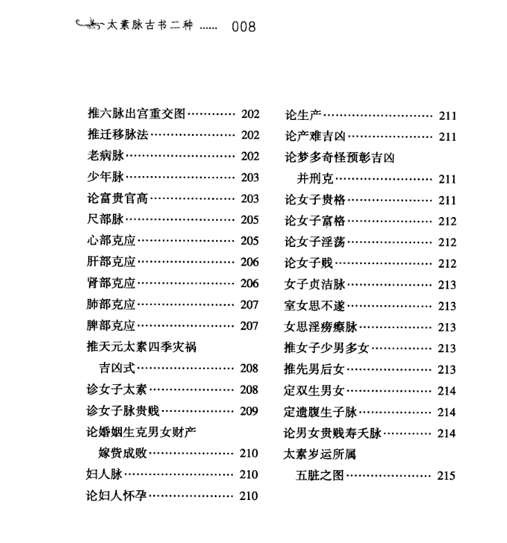 至于“四营脉”,则带有综合总括的性质。在探明“五阳”、“五阴”两类脉相后,还需分析评估它们的“轻、重、清、浊”情况,是为“四营”;然后再参合男女脉相以及相理的价值标准,就可以指拨一个人的命运前程了。