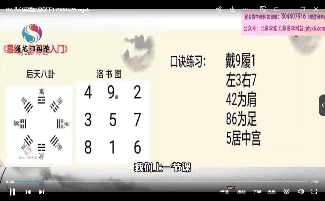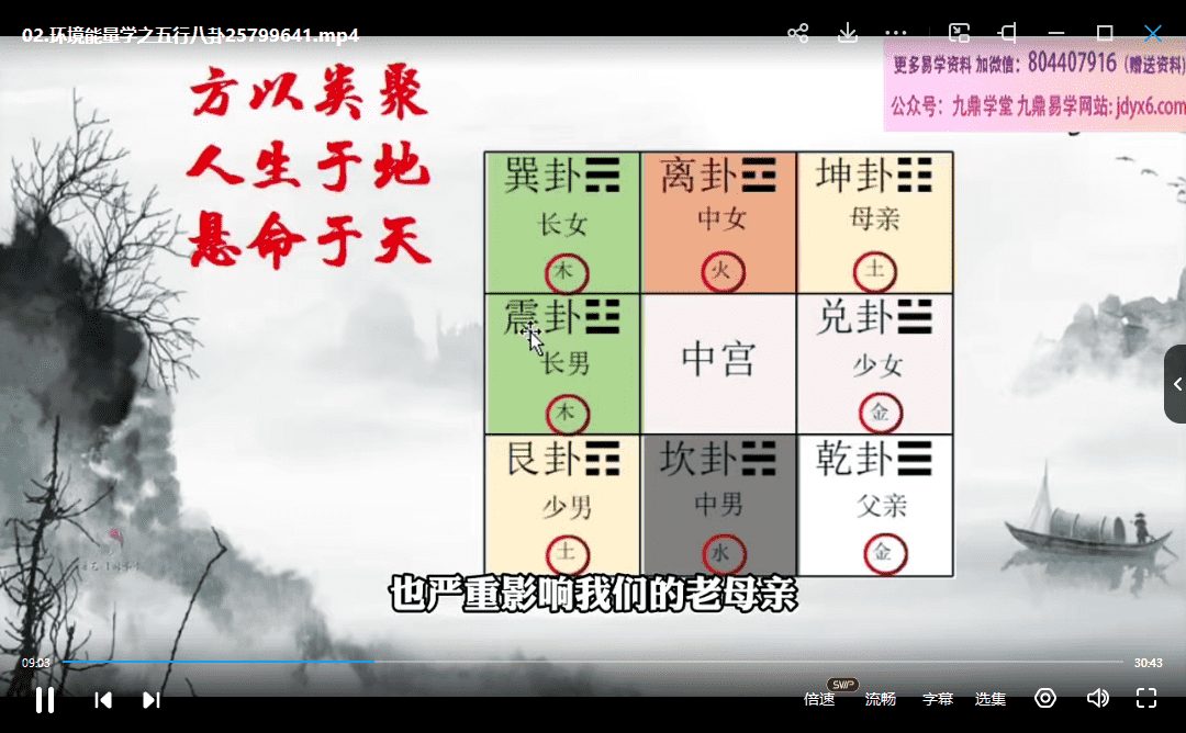 通艺门国学明戒老师-环境能量学视频9集,带字幕,讲解八宅环境能量,五行八卦应用。