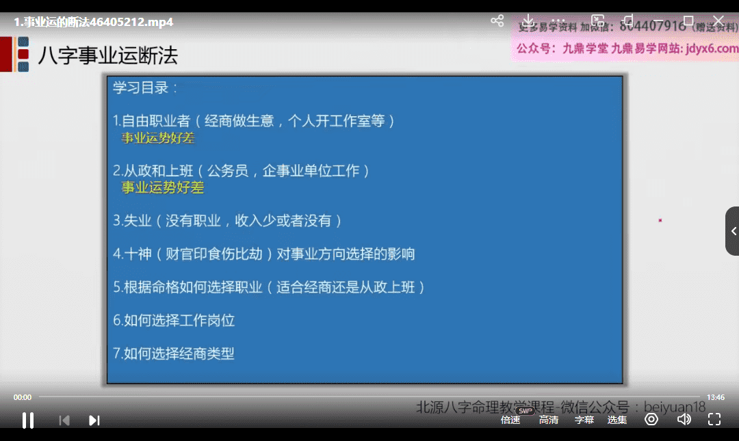 北源 事业格局事业运程职业规划断法51集视频(九鼎易学)