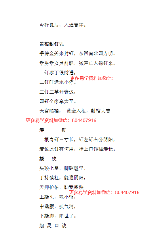 白事殡葬从倒头咽气到发丧下葬,所有环节用到的口诀,一应具全,好先生,长在嘴上。好的流口硬词,是先生必备的!!!