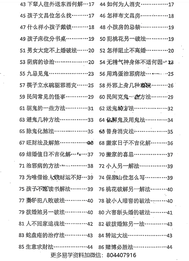 本书汇集的化解方法,对外公开!有易理五行相联,有相同巫术,但且很有效,书中破解方法让历代祖师的验证不被埋没在历史长河之中,一根火柴虽小但能点然態熊烈火,四两拨千斤,传承有缘人,解决学习多年不能实践问题!