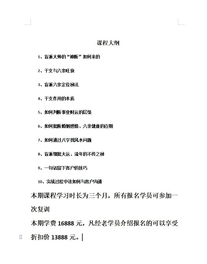 3、教案学例几乎都是员学现场提供,示实范战批命,如何句一话拿客下户,不等客说户话便知户客想问什么,实战性非之常强,市上面前所未有,适想合从业的易友,郝掌门承认若真学习这套论理的,三个定月能出师从业。