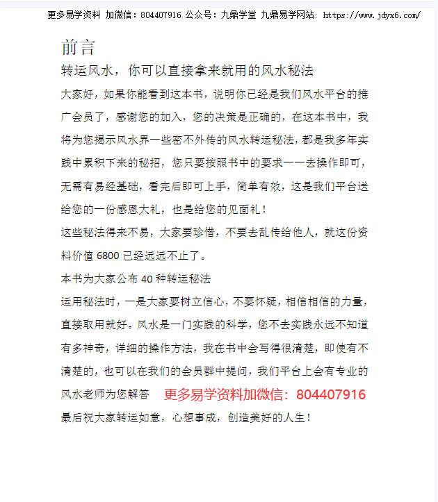 秘传转运风水 内部课程教材(催财改运布局秘法)39页