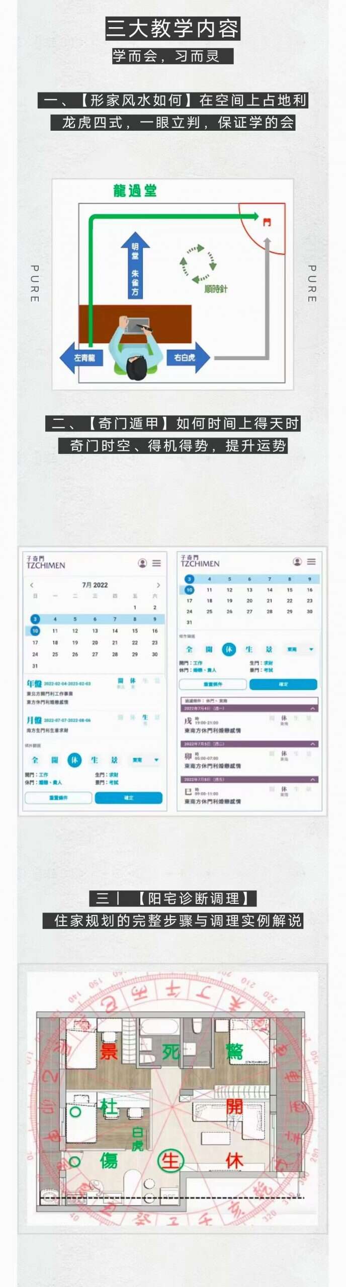 本课程最大特的点在于,不学只习到了门奇与风水的识知与理论,更合结实务操作,提供ㄧ个完整“住家划规的完整步骤调与理实例”,学员学习此完课程,就可以对自己的住风家水进行宅阳诊断调及理。