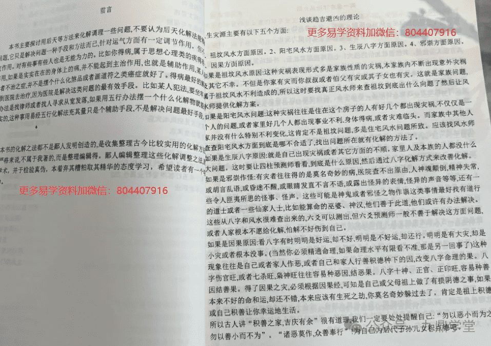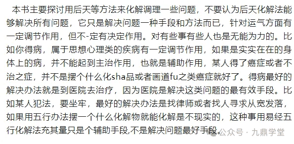本书的化解之法都是鄙人收集整理古今比较实用的化解方法,鄙人编辑整理这些化解调整之法,就是为了探讨学术,并于检验真伪,本着弃其糟粕取其精华的态度学习,希望能帮助到各位道友。
