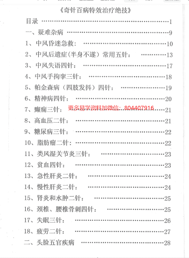 奇针百病特效治疗绝技 电子版120页 详细目录见下面截图