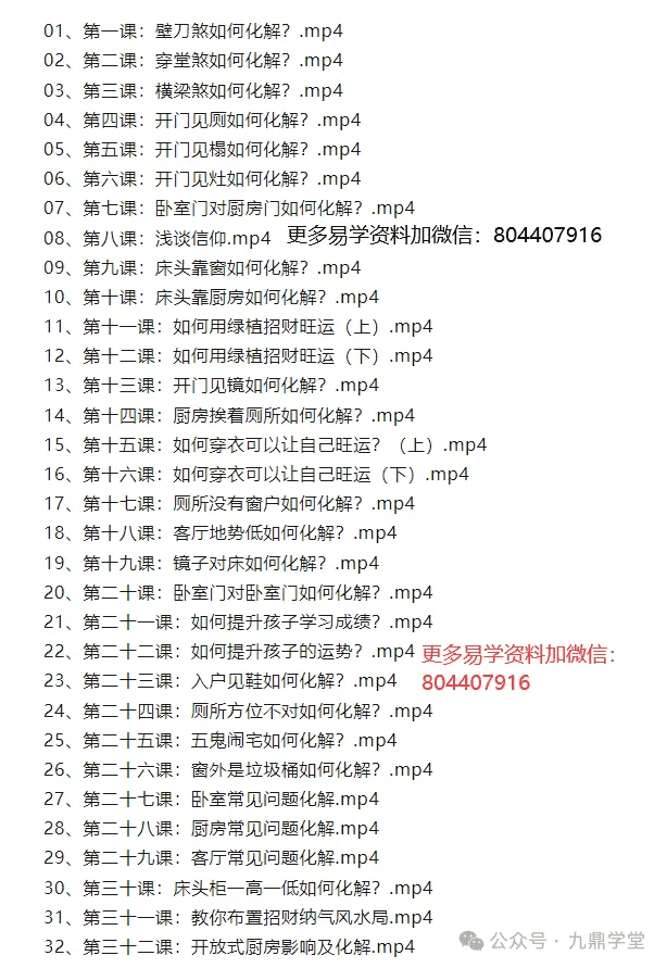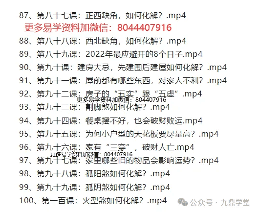 100集化解视频( 这套课讲解生活中的各种形煞的化解,作为一个风水师必须具备的技能就是化煞。而本课程让你明了煞气形成的特点从而产生的形态,教你化解这种动态能量,找出解决的方案。)