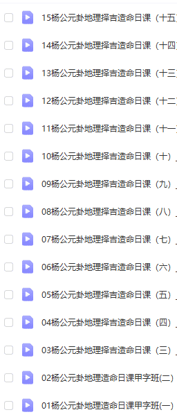 杨公堪舆日课《杨公元卦地理造命日课》视频15集17个小时、重磅择日课程,王易成老师2020年《杨公元卦地理造命日课》视频15集,造命择日法又称杨公造命日课。