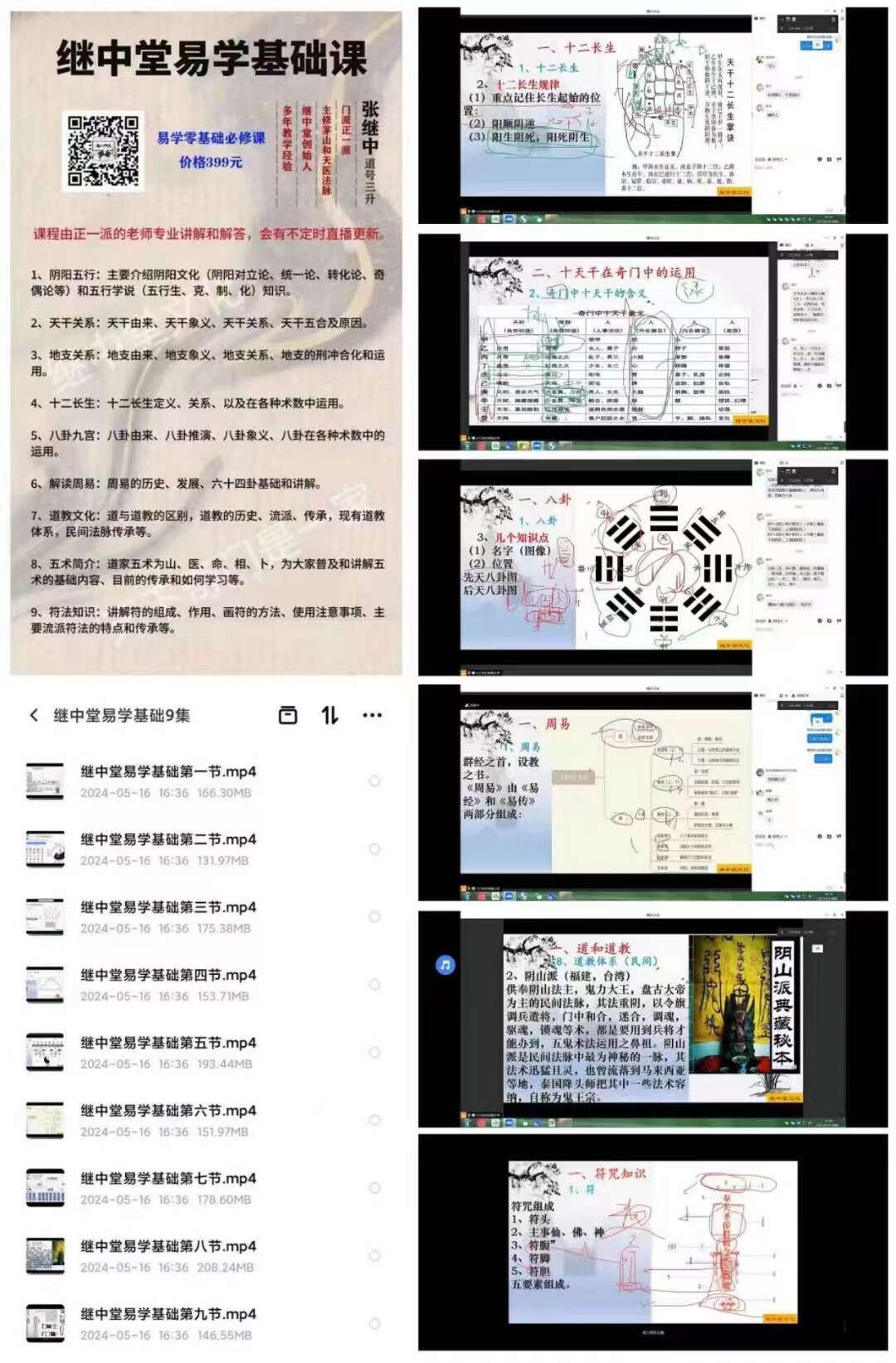 9、符法知识:讲解符的组成、作用、画符的方法、使用注意事项、主要流派符法的特点和传承等。