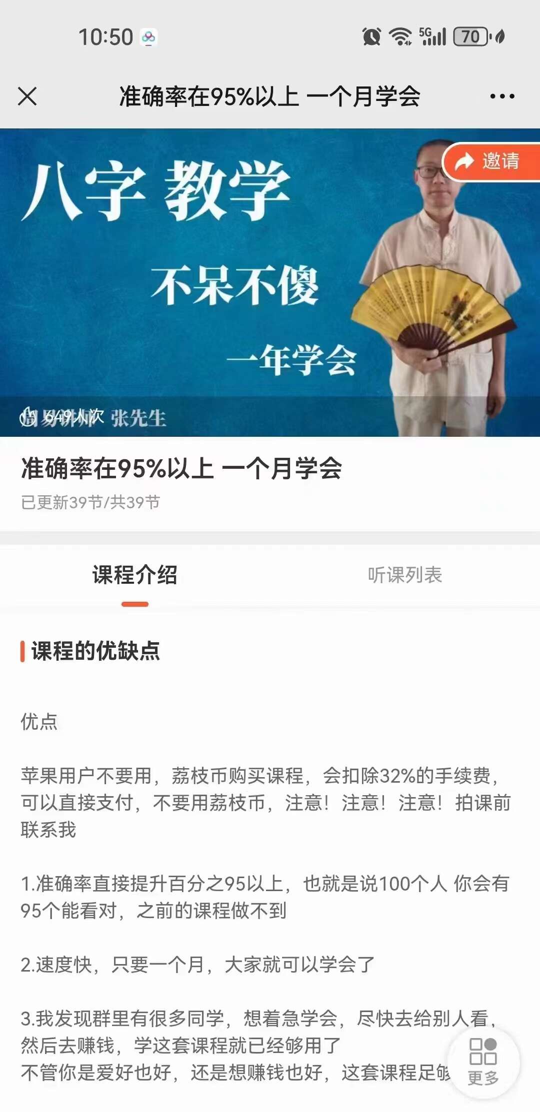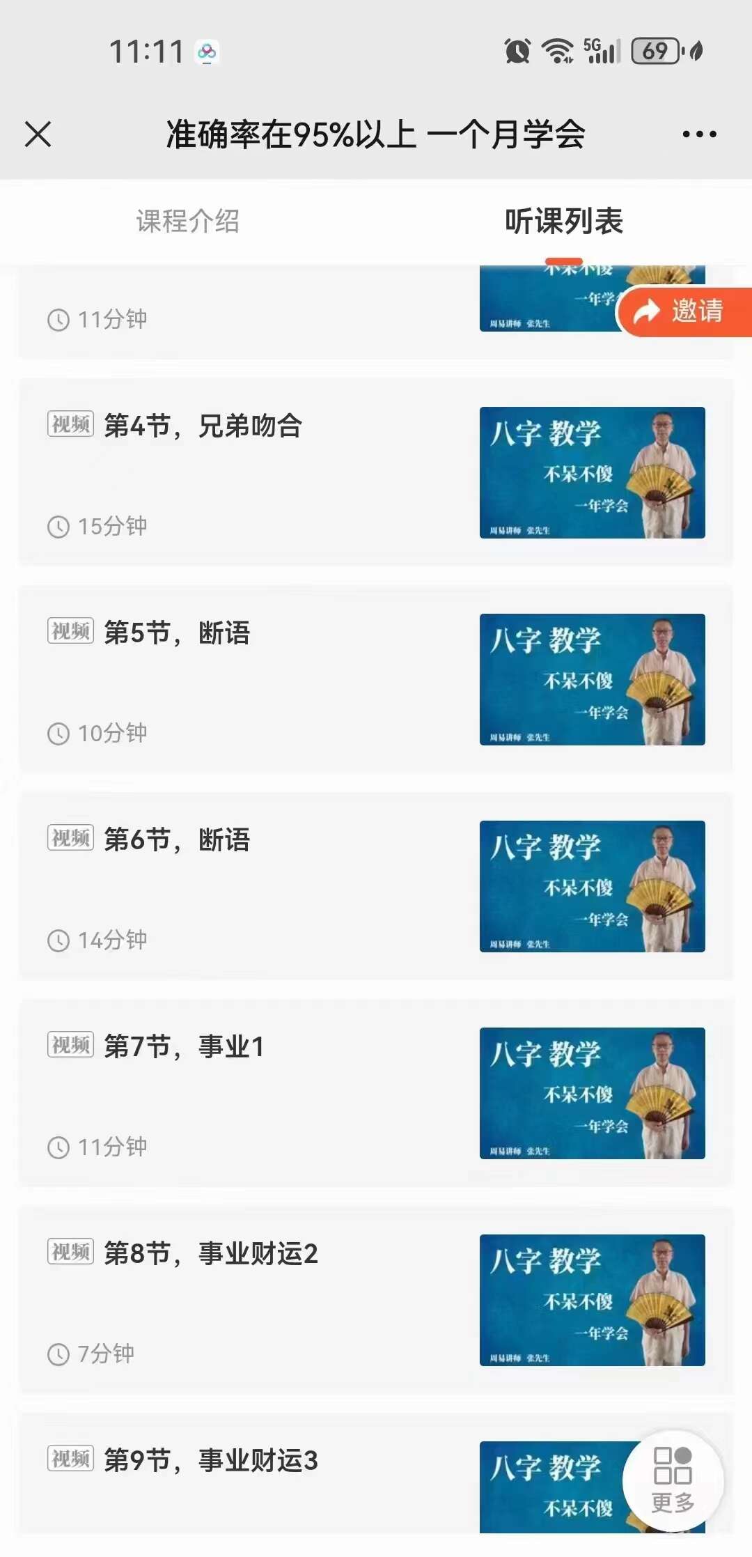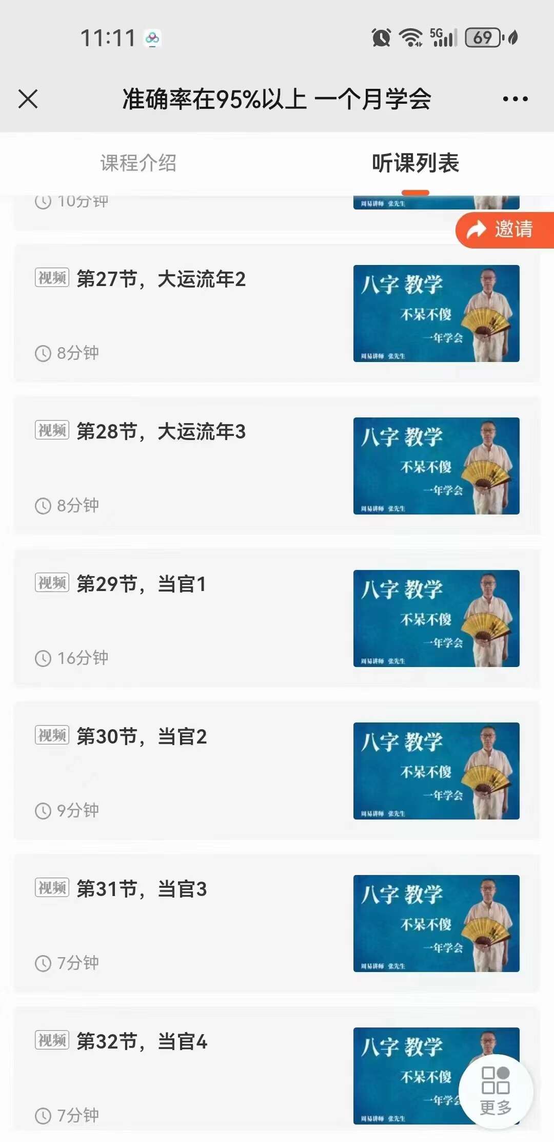 张先生八字预测学准确率在95%以上 一个月学会,共39节视频.