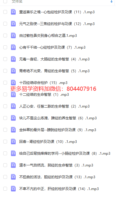 十二经络的生命智慧3集视频+16集录音。通过瑜伽或者各种锻炼方法,让十二经络活跃起来,则身体健康或者修道均可进行。
