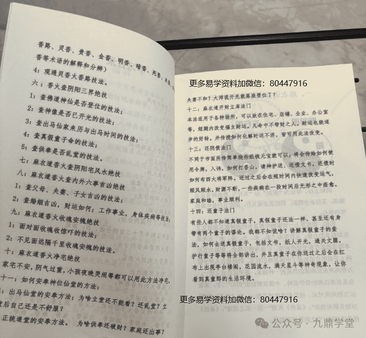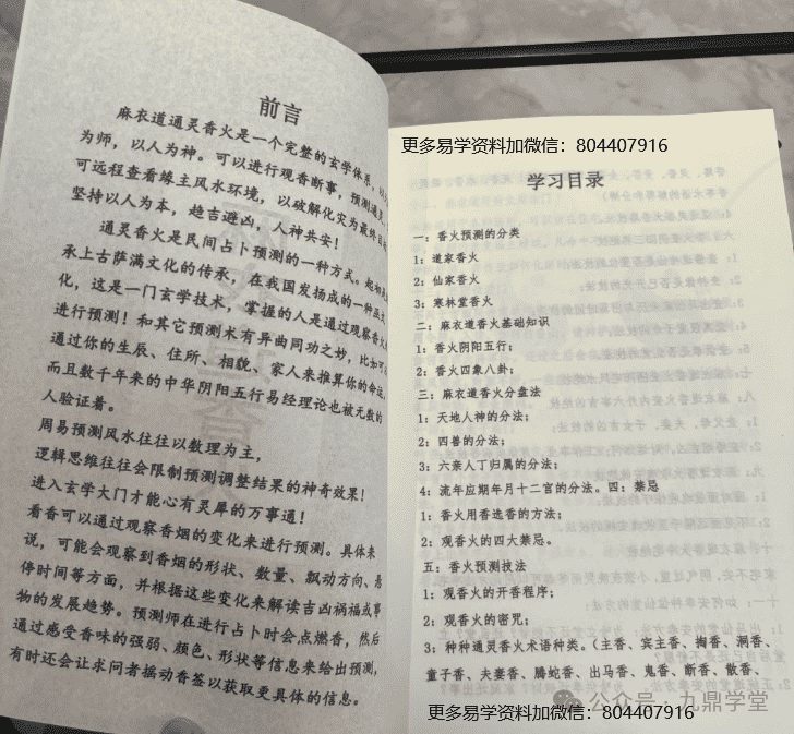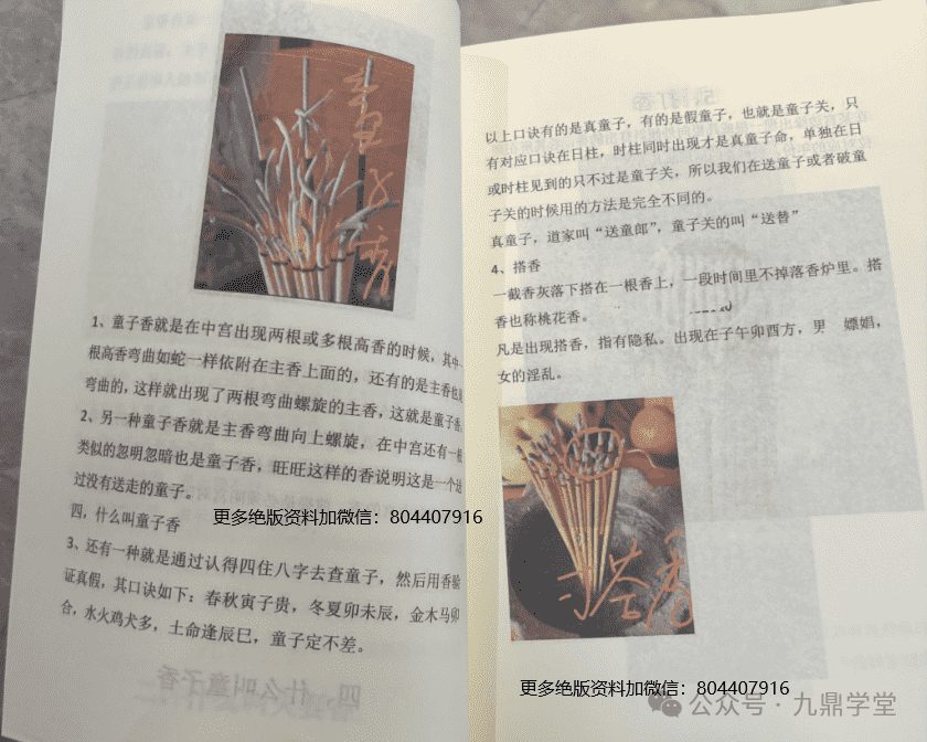 绝秘香谱《麻衣道香火》102页彩色实体书+16集视频,内容挺多,细讲香火道的看法。比网上那种什么24香谱靠谱多了!
