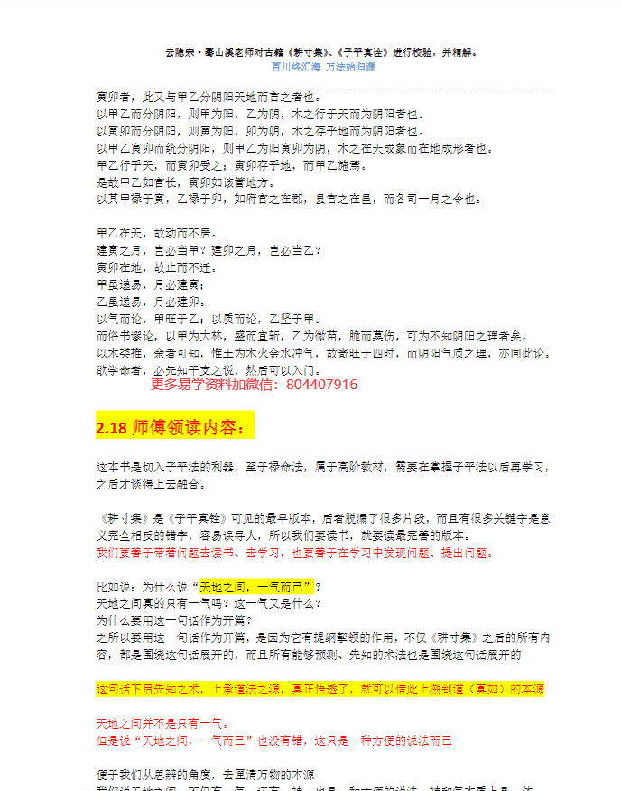云隐宗 ~葛山溪老师命理专著三本pdf,三部完整版本的命理书籍,约798页。两册古籍透解,耕寸集则是各种问答,据说云隐宗命理系列似乎有点牛,是目前最新出世的命理新秀。注意,《渊海子平》透解不是完整版,看了一下目录,还在讲解基础,只有60多页,所以本册是赠送的。