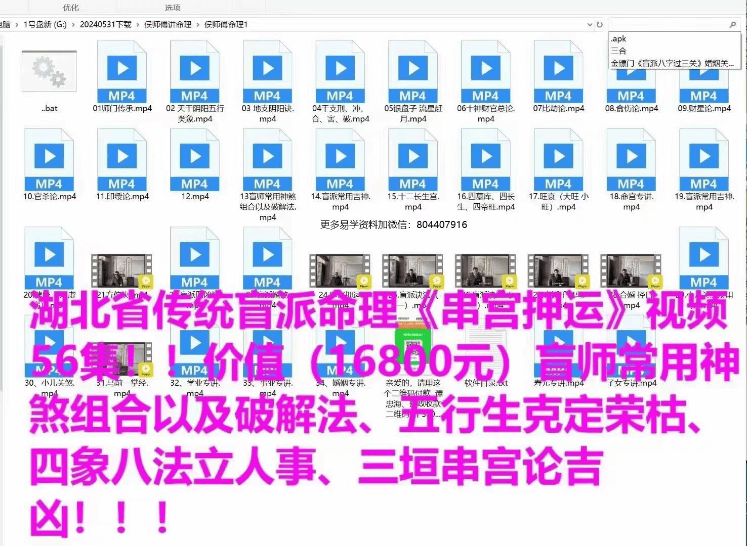 湖北省传统盲派命理《串宫押运》视频56集!!价值(16800元)盲师常用神煞组合以及破解法、五行生克定荣枯、四象八法立人事、三垣串宫论吉凶!!!