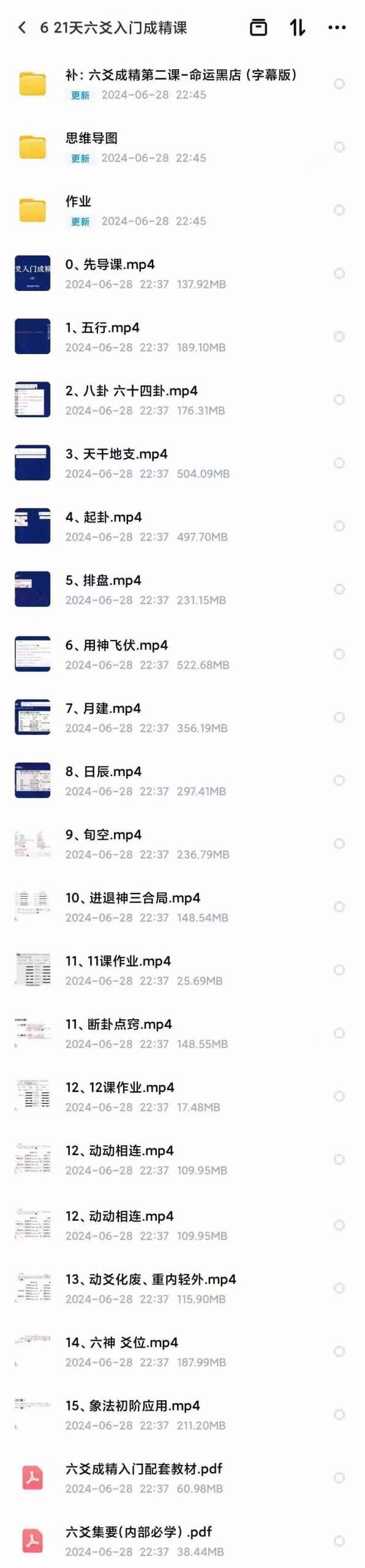 21天六爻入门成精课程,0基础讲解,包括视频,入门电子书,课后作业文档,思维图等进行引导学习,学习六爻要有方法,这套课程就是入门六爻的捷径方法,其实六爻很简单.