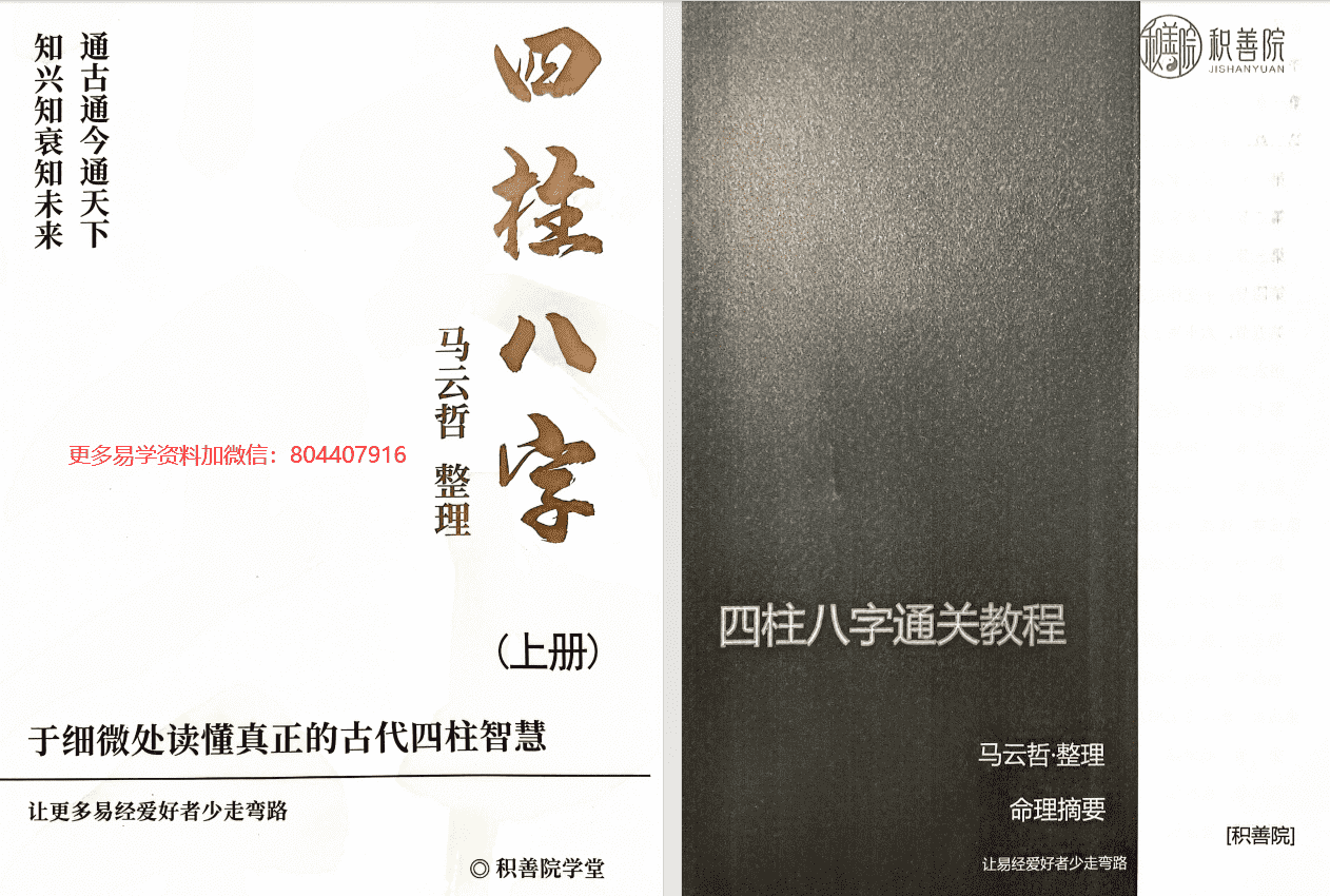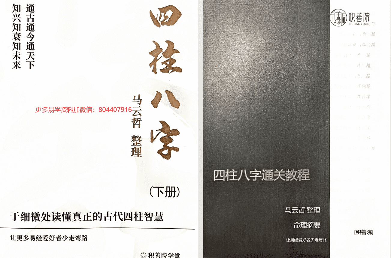 积善院学堂,马云哲四柱八字上下两册,于细微处读懂真正的古代四柱智慧,让更多易经爱好者少走弯路