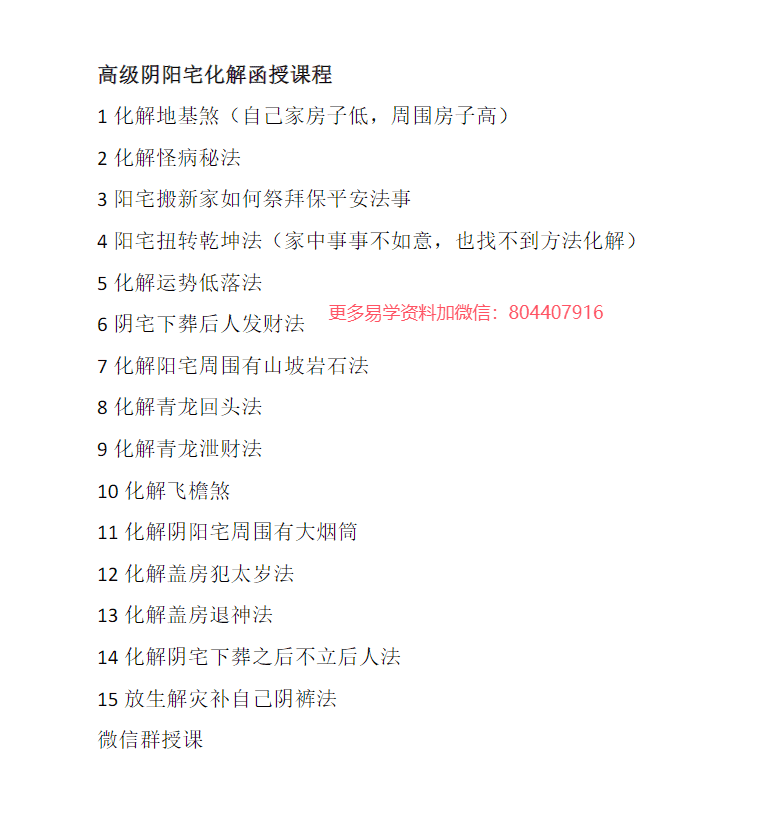 高级阴阳宅化解函授课程录音+文档pdf,微信群授课,讲解15大阳宅问题。