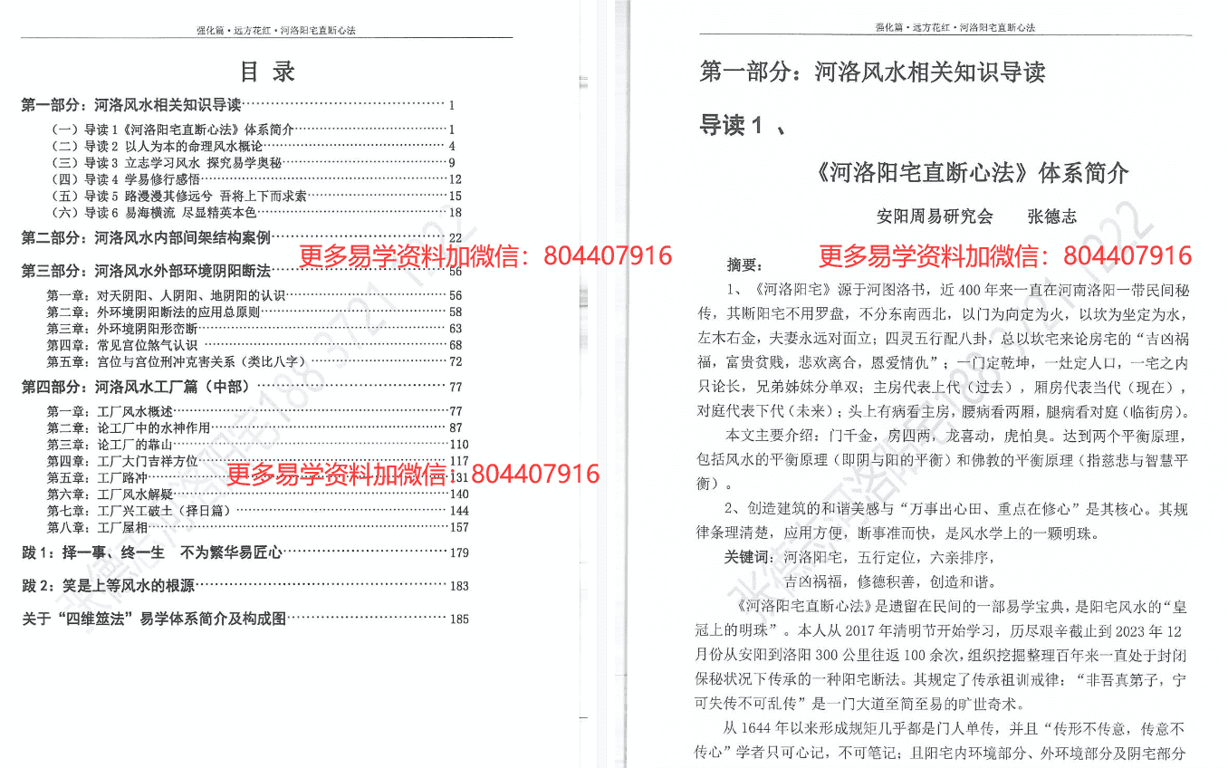 《张德志强化篇河洛阳宅直断心法》.pdf,199页。为第五部远方花红,清晰度较高,实战图解100例。