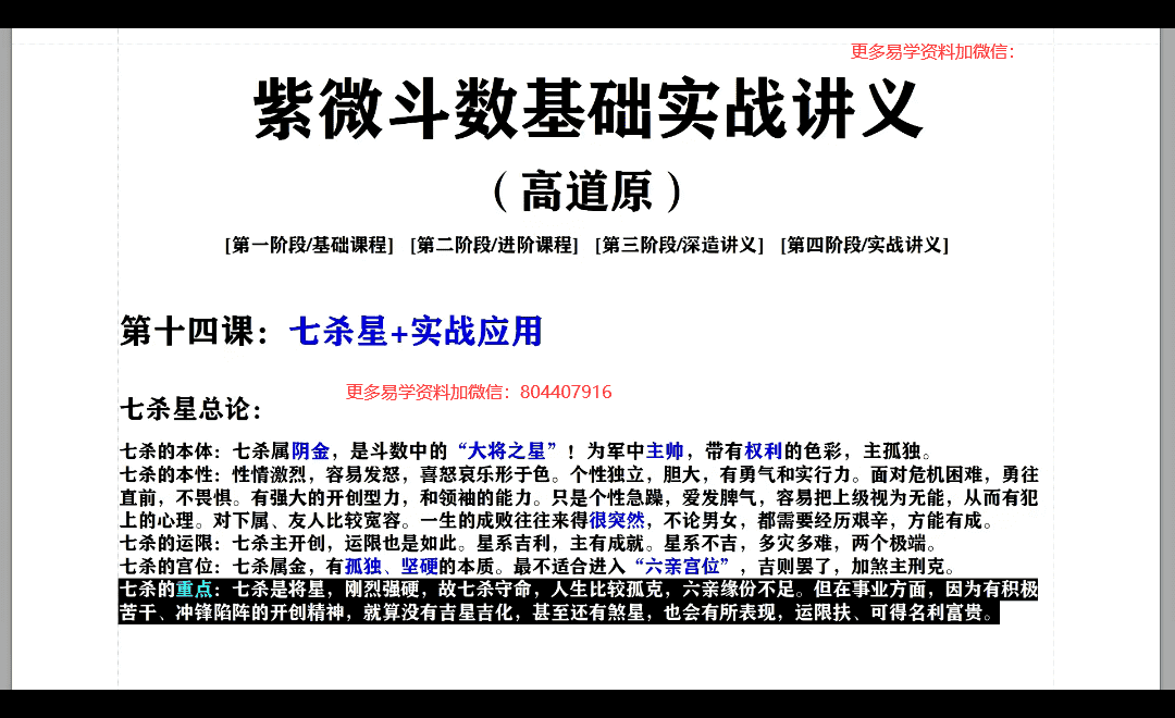 高道原紫微斗数零基础入门7集+进阶课程30集.