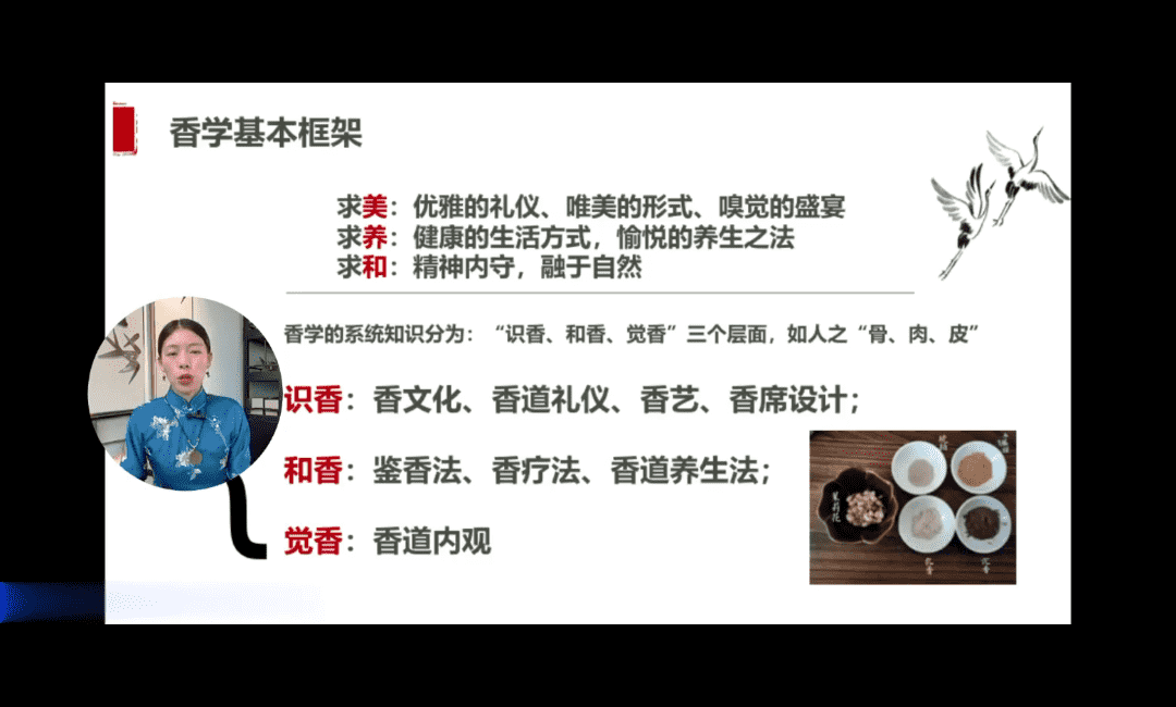 关于香道,本课程将带你快速了解香学基础知识,学习非遗古法制香的工具及制作技巧,学会如何闻香识香辨香制香,以及在日常生活中香的应用,以此感受中式诗意生活和东方美学艺术。