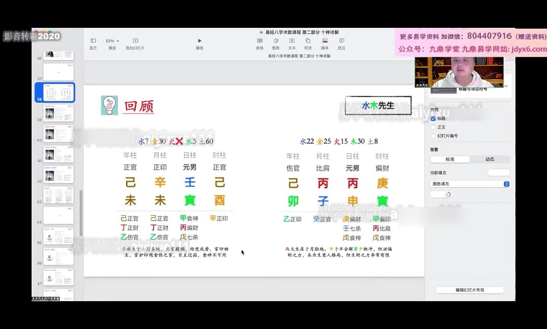 水木先生传统八字高级弟子班视频111集,廖墨香老师的弟子。内容多而详细,完整版