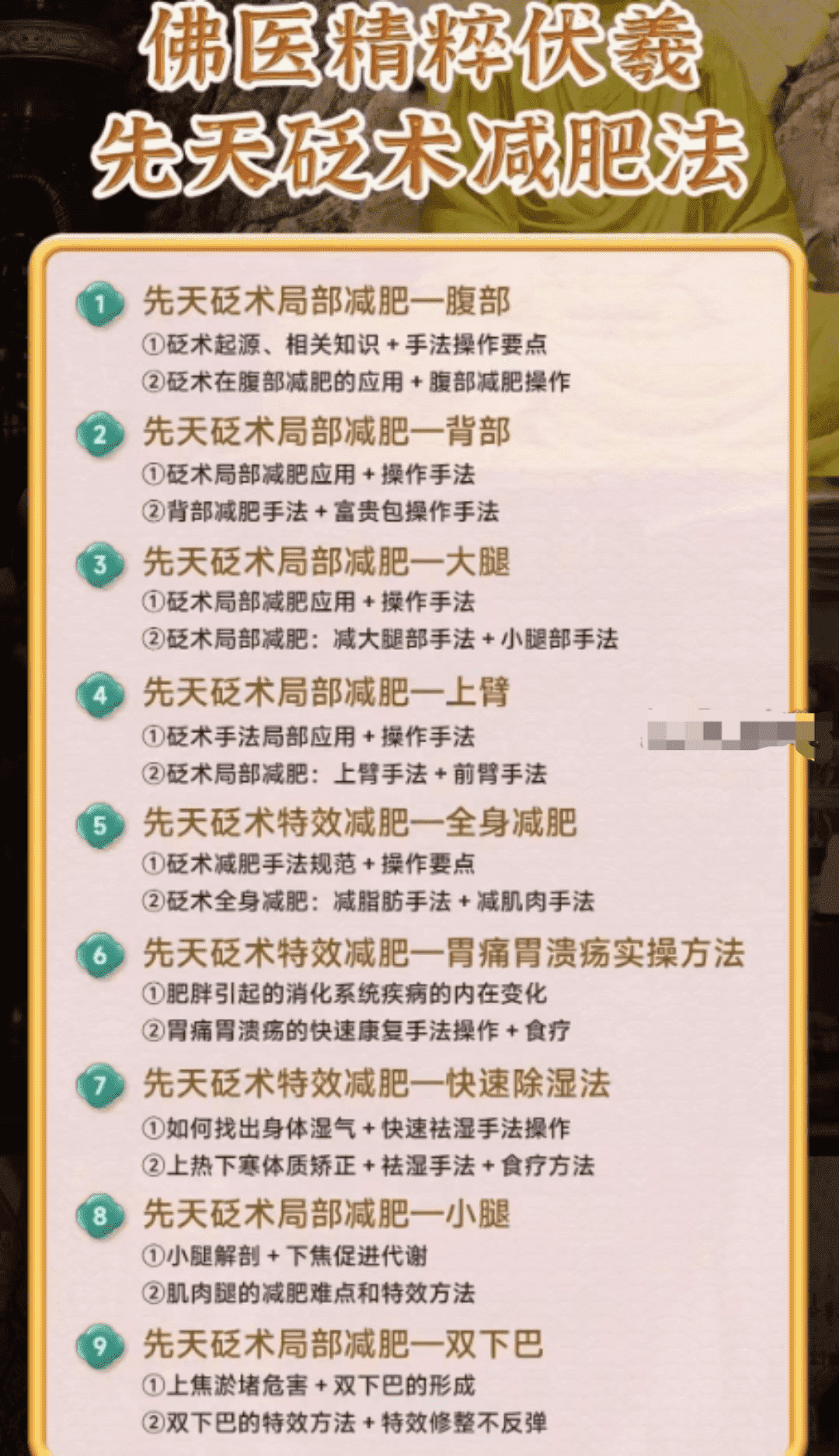 【减肥好课】谢巍老师《佛医精粹伏羲先天砭术减肥法》第2期 详细介绍如下图