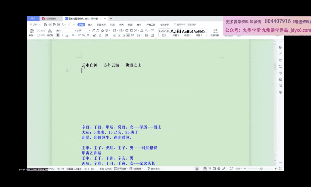 武当山道家鄗邑山人 八字第十期课程视频34集视频+教材pdf。