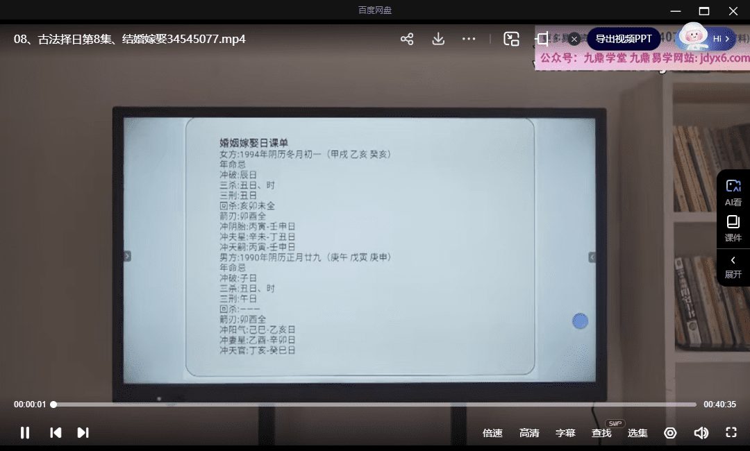 繆晓龙《正统择吉择日》视频20集,这是最新课程,和以前讲的课程不一样,讲解正统的择吉方法。