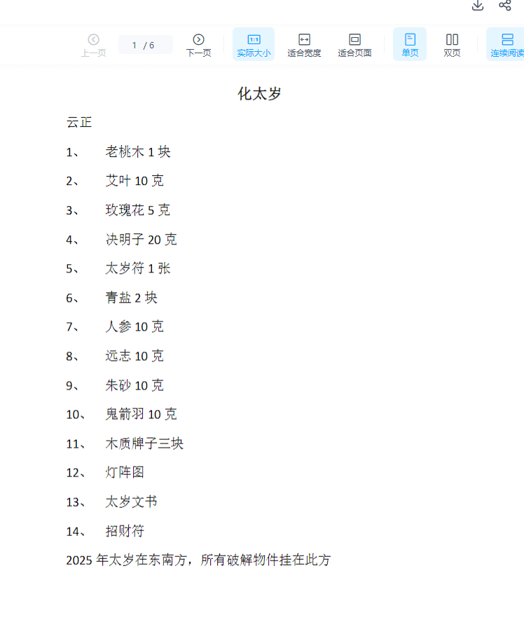 云正 2025化太岁法 6页。这个资料发布的有点不及时,就免费分享了,链接失效为止。