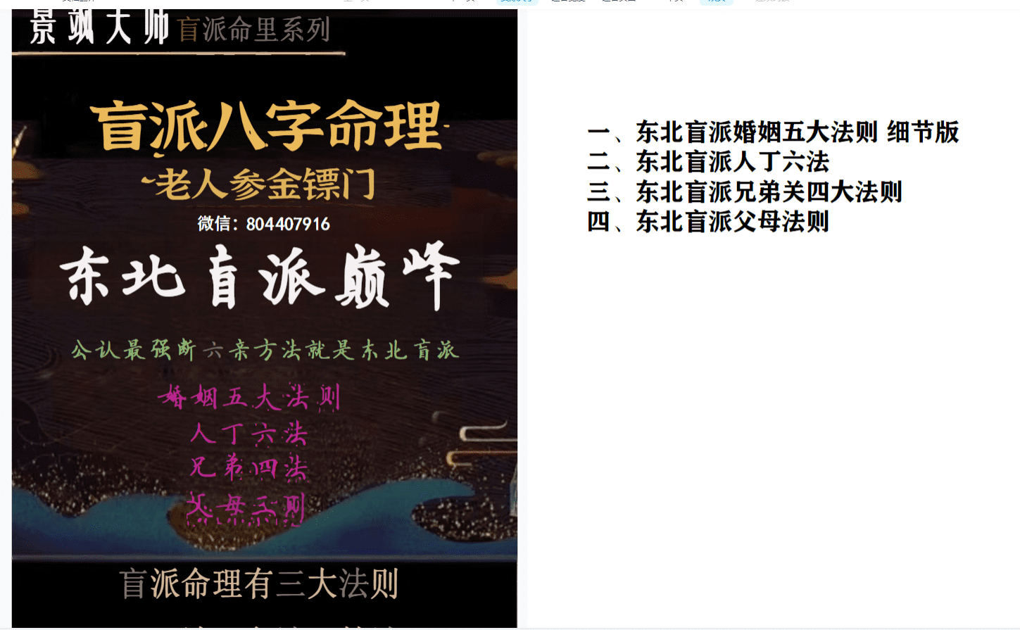 东北盲派巅峰.pdf,158页,金镖门老人参盲派内部教财。公认最强断六亲方法就是东北盲派景飒大师公开东北盲派巅峰。