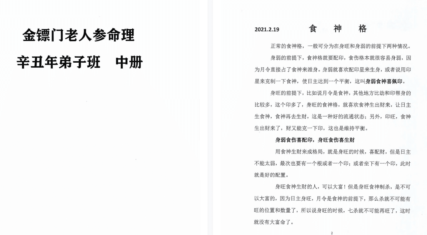 金镖门老人参命理2021辛丑年弟子班教学整理,三册近1千页资料!讲有《十二道门鸳鸯门破解》内容。