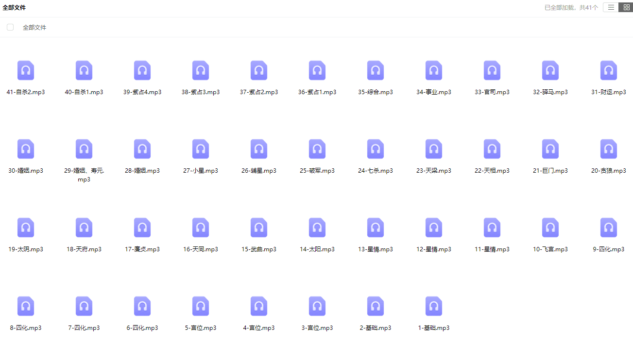 云中清河洛派紫微斗数内部录音41讲,从基础讲解到高级资占内容都有,涵盖宫位、四化、紫占、婚姻、事业等多方面内容。音频没有文档资料