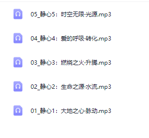 五元素能量音律引导静心录音5集,每集十多分钟以音乐能量带你静心