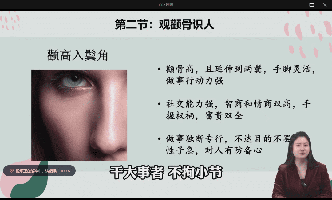 “张芝鸣 面相识人学”14集视频,简单直接,带你快速学会面相识人,主要内容是:张芝鸣的面相识人学课程视频,涵盖从观脸到流年痣、纹理等多个部位的识人技巧,按部位分节讲解。